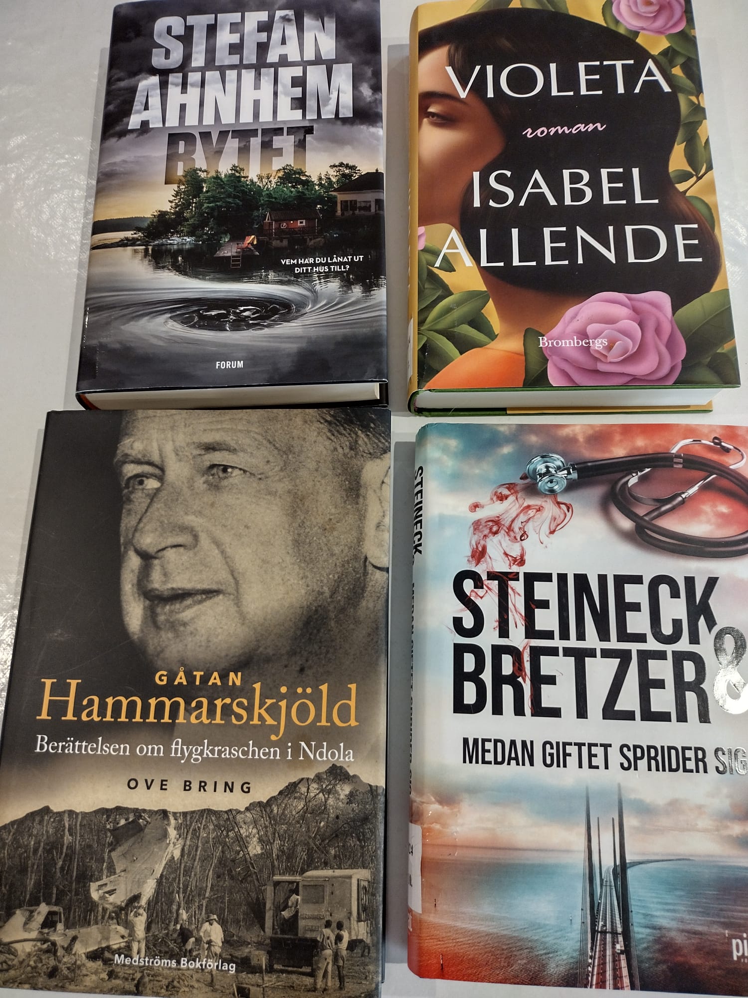 Varje år köper vi in ett antal nya böcker från den senaste bestsellerlistan; deckare, biografier, romaner, reseskildringar, aktuella berättelser, historiska händelser, m m för att hålla oss underrättade om vad som händer i litteraturens värld. Vi har även en hel del ljud-böcker som många tycks föredra nu för tiden.